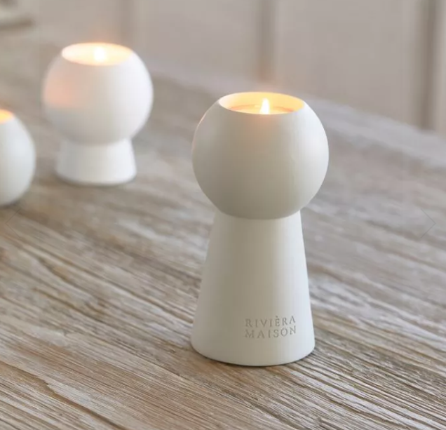 Das große RM Oriental Pearl Votive L überragt andere Teelichthalter. Logischerweise ist sein Sockel ziemlich hoch. Der Halter ist aus Polyresin in der schönen Farbe Natur/Leinen gefertigt. Er hat zwei kleinere Brüder, mit denen er ein schönes Trio bildet, aber auch alleine macht er sich gut.