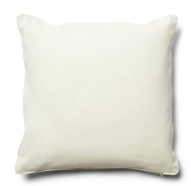 Der RM Monogram Pillow Cover 50x50 ist ein schicker Kissenbezug aus weißer Baumwolle. Auf der Vorderseite ist das RM-Monogramm in Weiß aufgestickt, das dank der Dicke der Stickerei gut sichtbar und fühlbar ist. Die Rückseite ist einfarbig weiß. Die Paspel ist abgerundet.